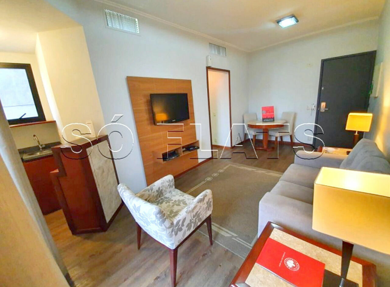Flat disponível para locação no Madison Plaza com 1 dorm e 1 vaga de garagem no Jardim Paulista