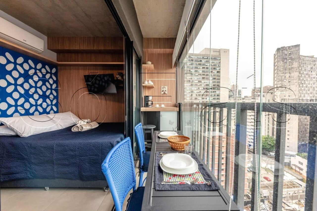Studio mobiliado no Setin Downtown São Luís para locação na Consolação com varanda.